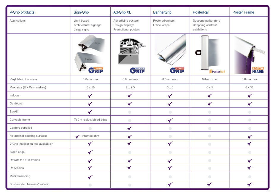 SignGrip® was designed for use with large signs and meets all the requirements for flexface backlit signs on lightboxes. The frameless bleed edge allows maximum light to reach the edges of the frame and SignGrip is readily retrofitted to existing light boxes.